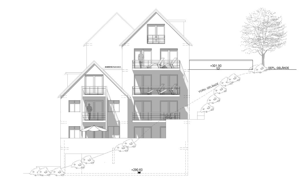 Die Baugenehmigung ist bereits erteilt, die Baugrunduntersuchung liegt vor - alles ist vorbereitet für den Beginn eines Projekts, das höchste Ansprüche erfüllt: Ein Mehrfamilienhaus mit 7 luxuriösen Wohneinheiten und insgesamt rund 668 m² Wohnfläche, dazu 9 komfortable Tiefgaragenstellplätze.